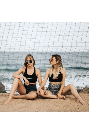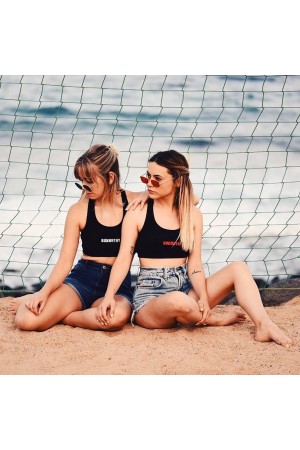 Top de tirantes negro con logo GONORTHY bordado rojo. Con tirantes cruzados.